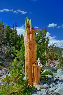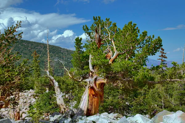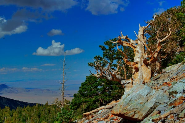Die hier wachsenden Bristlecone-Kiefern (Pinus longaeva) zeichnen sich durch ihr hohes Alter und ihre Fähigkeit aus, ungünstige Wachstumsbedingungen zu überstehen. Bristlecone-Kiefern wachsen im Great Basin National Park in isolierten Wäldern direkt unter der Baumgrenze. Die Bedingungen sind hart, mit kalten Temperaturen, einer kurzen Vegetationsperiode und starken Winden. Borstenkiefern wachsen in dieser hoch gelegenen Region sehr langsam und fügen in manchen Jahren nicht einmal einen Wachstumsring hinzu. Dieses langsame Wachstum macht ihr Holz sehr dicht und widerstandsfähig gegen Insekten, Pilze, Fäulnis und Erosion.