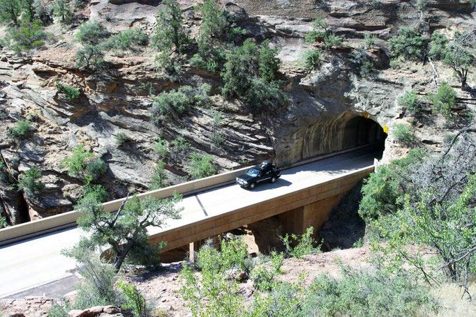 Der Zugang von Osten in den Nationalpark ist nur durch einen schmalen Tunnel möglich. Fahr­zeuge, die breiter als 2,38 m oder höher als 3,45 m sind können nur nach Absprache passieren, da sie wegen ihrer Größe nicht mit einer Fahrspur auskommen. Unmittelbar am Nordausgang des Tunnels beginnt der kurze Trail zum Zion Overlook. Nach etwa 800 Metern auf gut ausgebauten Wegen ist das Ziel erreicht und der Wanderer wird mit einem atemberaubenden Ausblick auf das Tal belohnt