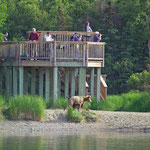 Der Park ist nur mit dem Flugzeug oder dem Schiff erreichbar. Es werden Tagesausflüge, aber auch mehrtägige Exkusionen angeboten. Die große Touristenattraktion sind die Brooks Falls, an denen sich Jahr für Jahr dutzende Grizzlybären versammeln, um hier die stromaufwärts zu ihren Laichgründen wandernden Lachse zu fangen. Ein Spektakel nicht nur für Fotografen.