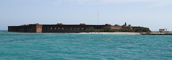 Auf der Hauptinsel Garden Key, bauten die US Militärs zur Mitte des 19.Jahrhunderts unter großem Aufwand das mächtige, sechseckige Fort Jefferson, das mit bis zu 1.500 Soldaten und 450 Kanonen bestückt war. Es kam jedoch zu keiner Zeit zu Kampfhandlungen und so wurde das Fort wenige Jahre später zum Gefängnis "degradiert". Heute ist hier das NPS Visitor Center untergebracht. Die Gewässer rund um das Fort eignen sich optimal zum Schnorcheln.